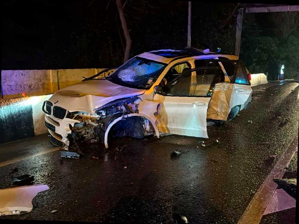На утренних кадрах видно, как автомобиль после столкновения с бетонным блоком ограждения взлетел в воздух. Машина получила серьезные повреждения.